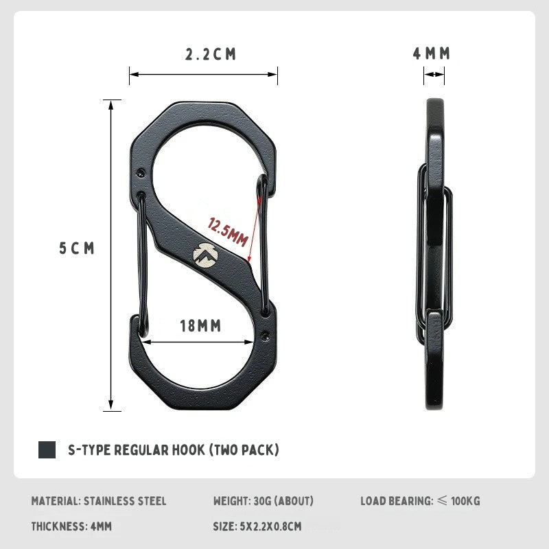 Clip in gear, secure accessories, or hang lights from your tent. The S-Hook is built with durable stainless steel and have a 100kg load-bearing capacity. Designed for low-wear, resist rust for long-lasting performance outdoors.